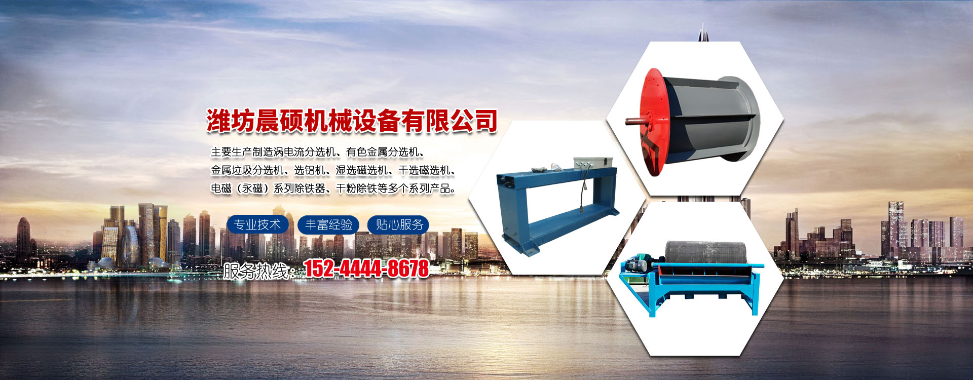 主要生產(chǎn)制造渦電流分選機、有色金屬分選機、金屬垃圾分選機、選鋁機、濕選磁選機、干選磁選機、電磁(永磁)系列除鐵器、干粉除鐵等多個系列產(chǎn)品。